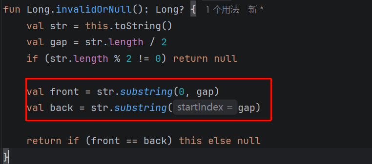 println(str.substring(6)) // 输出: World题目中用于切割给定长整型数值的String值的前半部分与后半部分: