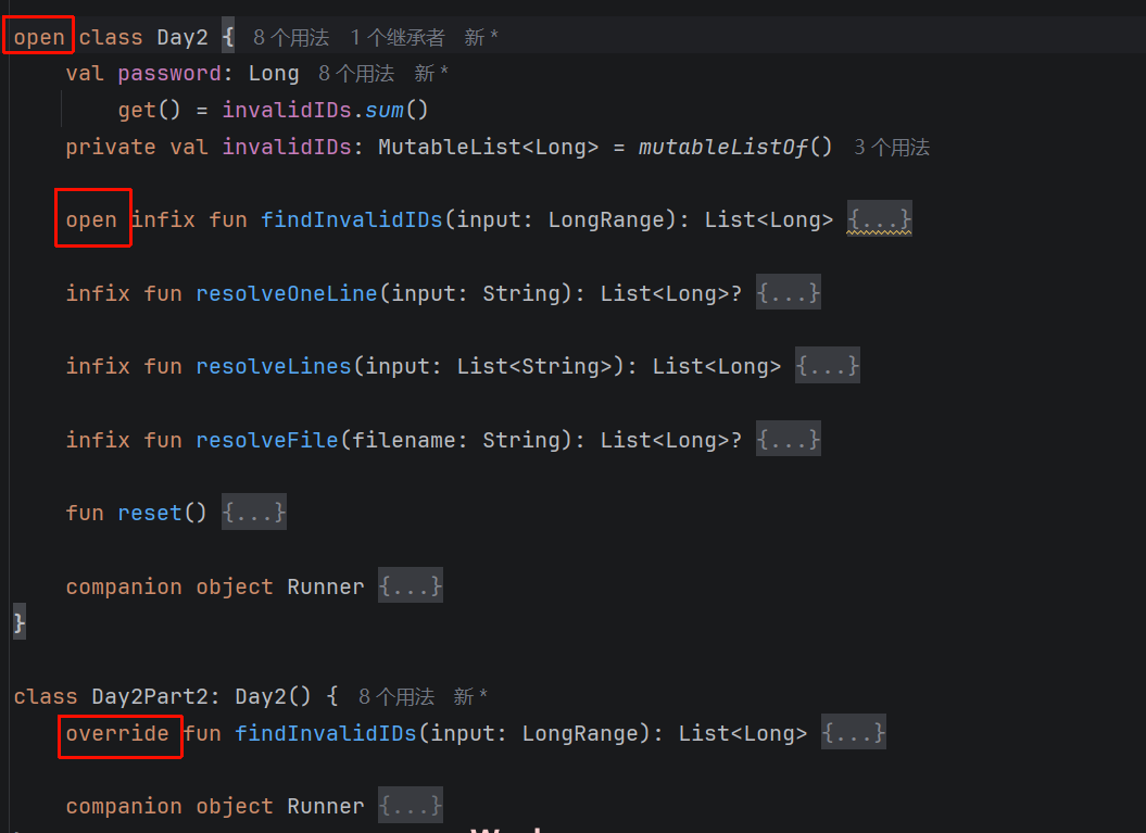 open修饰;Kotlin的类默认是final的,不可继承的 - 父类中的属性或方法若要被继承,也需要使用
