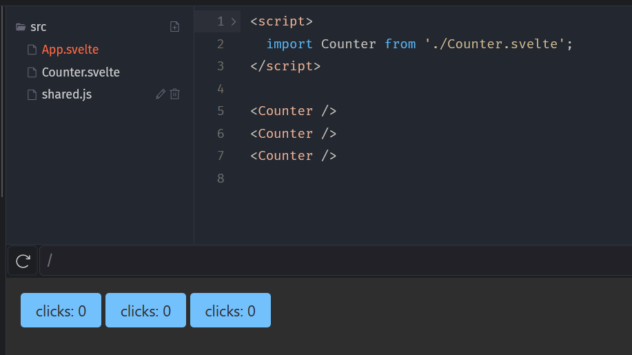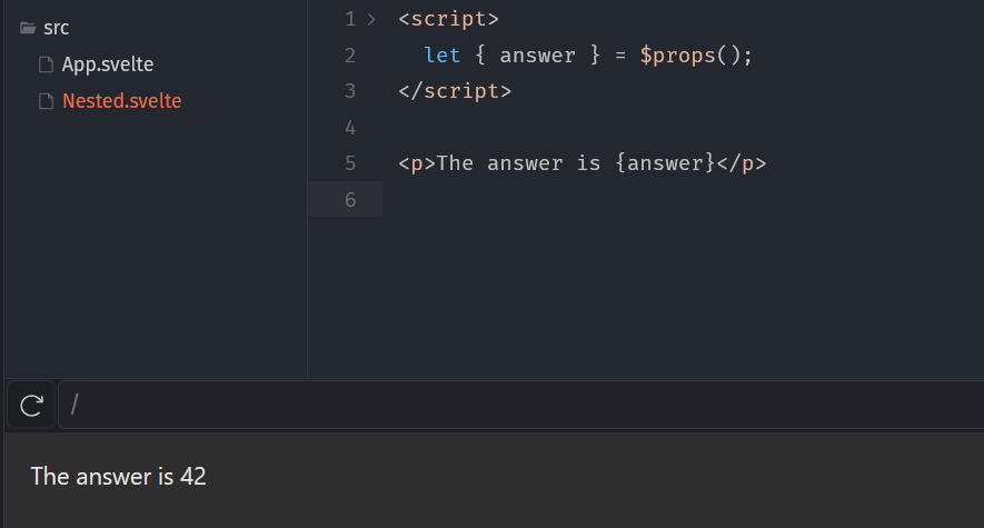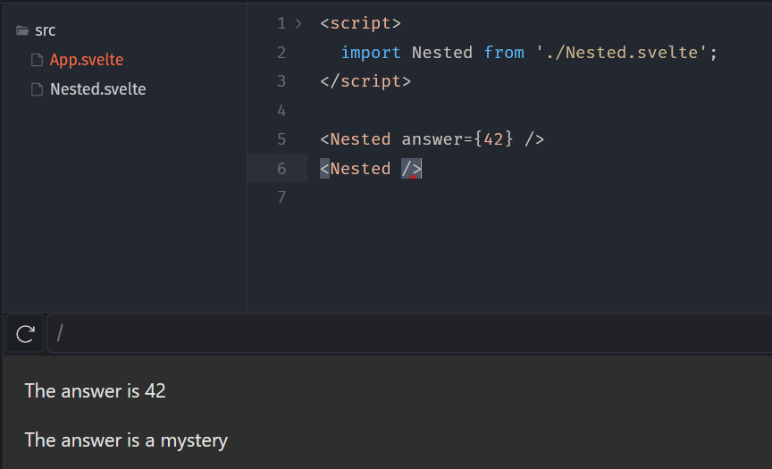 <Nested />Nested不一定要叫Nested,import Opened from './Nested.svelte也能用, 但这里是为了演示Svelte有智能防止组件冲突的特性