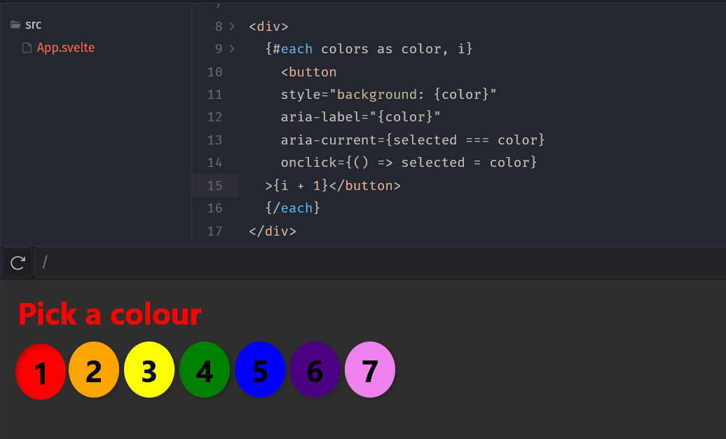 有时候元素属性和传递进去的变量,它们的名称不一定一样。对于这种情况,Svelte提供了短属性: