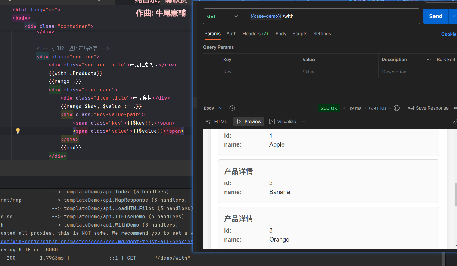 Gin框架模板也是以{{}}包裹模板语句
