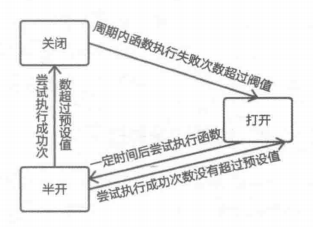 断路器中存在三种状态,分别是关闭、打开、半开,它们之间的状态转化如下图所示