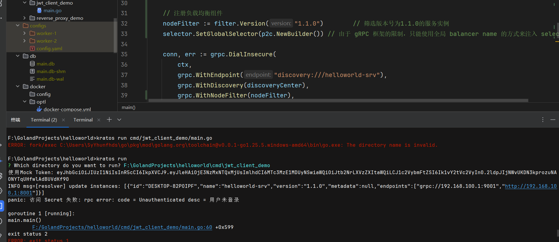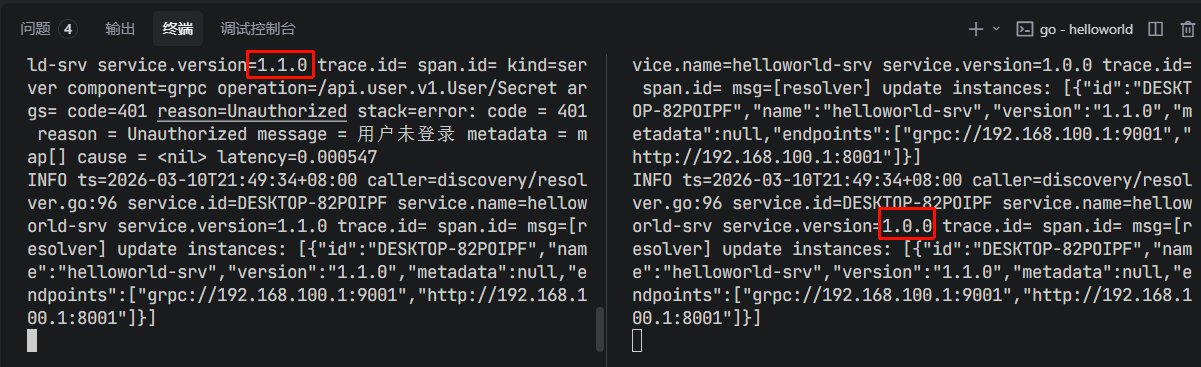 defer conn.Close()- 如果目标服务版本不存在,Kratos的gRPC客户端会得到