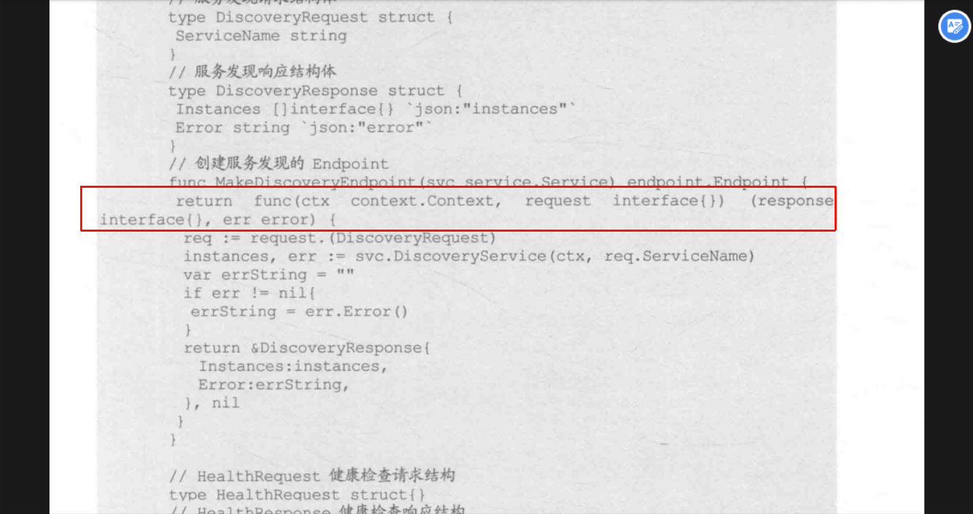 service定义,嗯,是gRPC的味道 func(ctx context.Context, req any) returns (resp any)