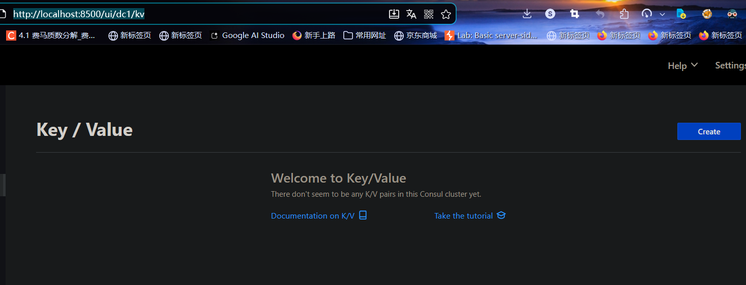 docker启动后访问http://localhost:8500/ui/dc1/kv即为KV管理界面