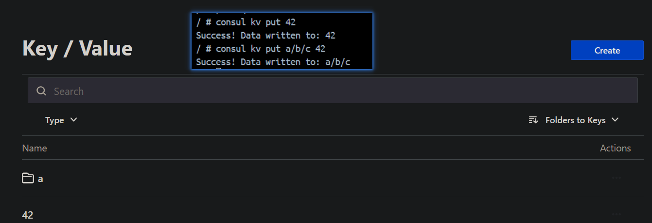 -flags=42/ # consul kv put -flags=42 sql/private/account/username admin Success! Data written to: sql/private/account/username