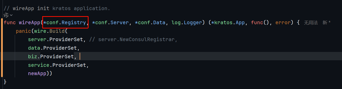 grpc.go里要显式注册服务,不然wire不知道新的服务在哪里被用上了