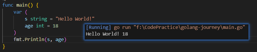 s, age := "Hello World", 18