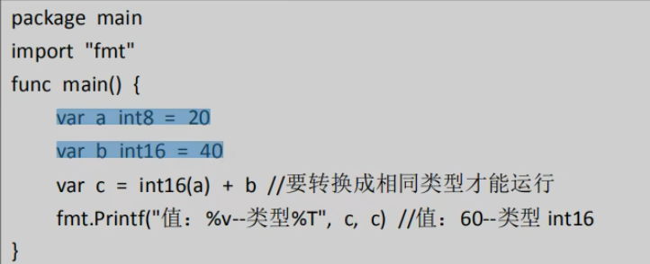 fmt.Printf // 格式化打印, 和C语言差不多Print和Println