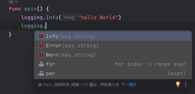 logging.Info("hello World")