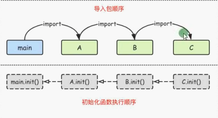 对于导入多个包的情况,Golang会从main包开始检查起所导入的包,每个包中又可能导入其他包。Golang编译器由此建立树状图(描述了包的引用关系),再根据引用顺序决定编译顺序,依次编译包中的代码。