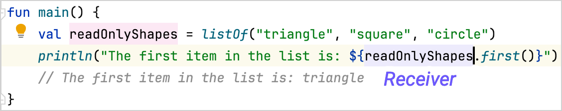 在介绍扩展函数的完整语法之前,你需要理解什么是接收者(receiver)。接收者就是该函数被调用时所指向的对象。换句话说,接收者是信息共享的来源或对象。