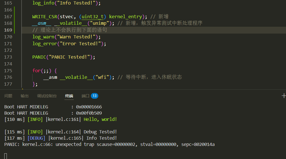 __asm__ __volatile__("csrr %0, sepc" : "=r"(value));“内联汇编”,一种在 C 语言中嵌入汇编的语法。虽然你可以在一个单独的文件(
