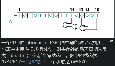斐波那契LFSR和伽罗瓦LFSR均使用抽头序列控制参与反馈运算的比特位,二者也都会提取寄存器末尾(图上是